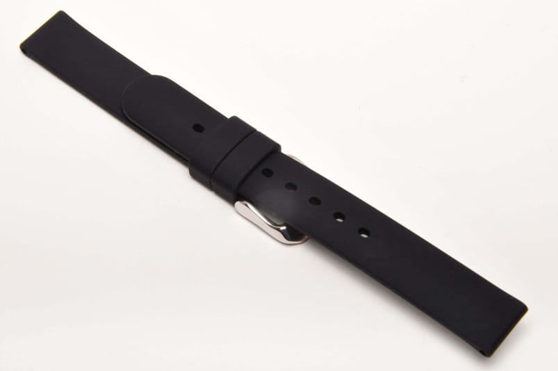 Wykonany z miękkiego silikonu, w jednolitym kolorze. Równoległy, gładki pasek. Dwie szlufki, stalowa klamerka.