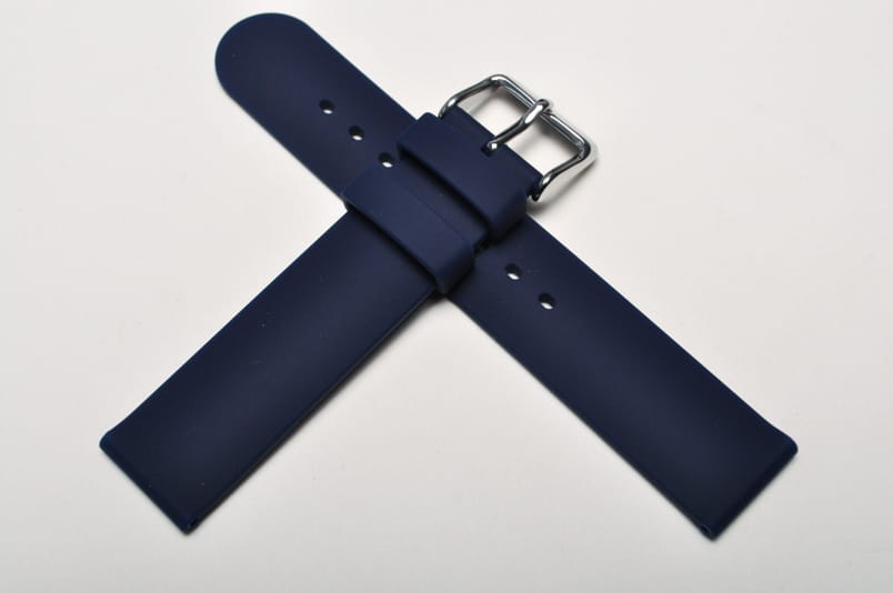 Wykonany z miękkiego silikonu, w jednolitym kolorze. Równoległy, gładki pasek. Dwie szlufki, stalowa klamerka.