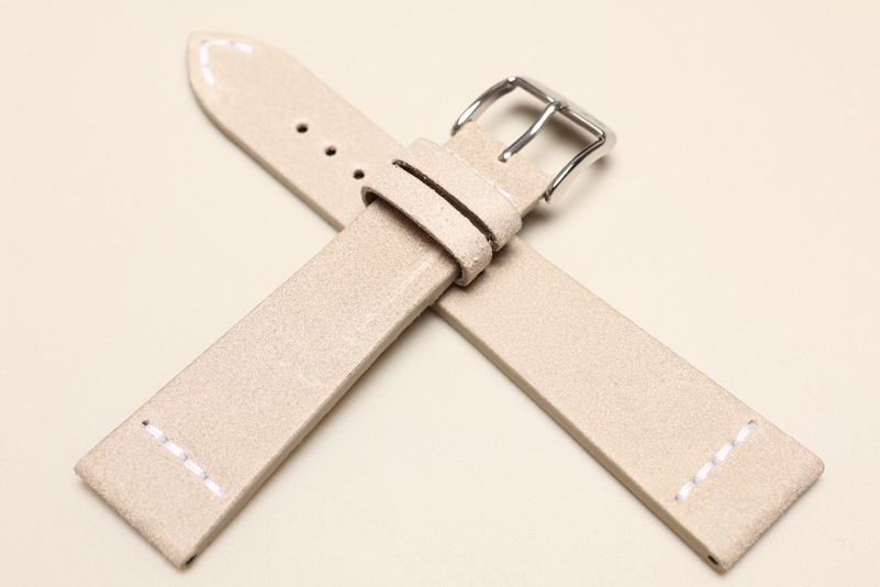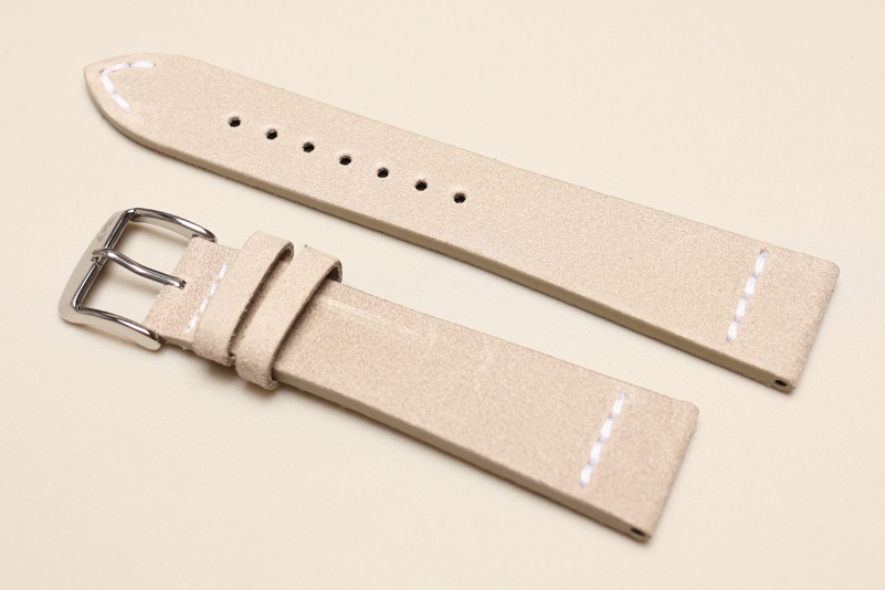 Wykonany z naturalnej, zamszowej skóry. Przeszyty na końcach ozdobnym, krótkim szwem. Delikatnie pogrubiany. Brzegi paska malowane. Dwie szlufki, stalowa klamerka. Dość miękki pasek w stylu Vintage.