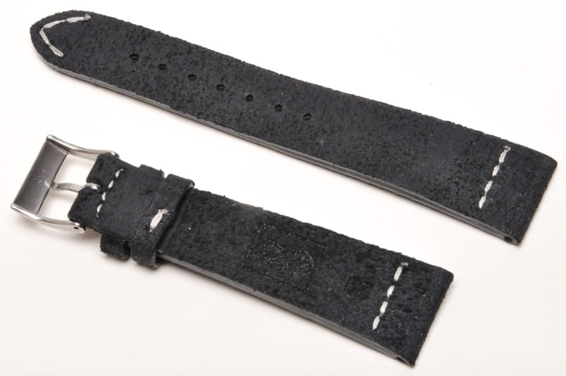 Wykonany z naturalnej, zamszowej skóry. Przeszyty na końcach ozdobnym, krótkim szwem. Delikatnie pogrubiany. Brzegi paska malowane. Dwie szlufki, stalowa klamerka. Dość miękki pasek w stylu Vintage.