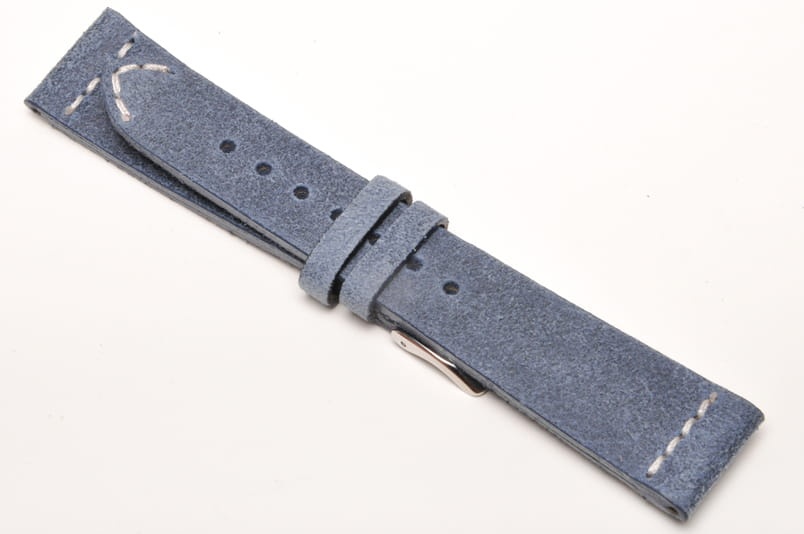 Wykonany z naturalnej, zamszowej skóry. Przeszyty na końcach ozdobnym, krótkim szwem. Delikatnie pogrubiany. Brzegi paska malowane. Dwie szlufki, stalowa klamerka. Dość miękki pasek w stylu Vintage.