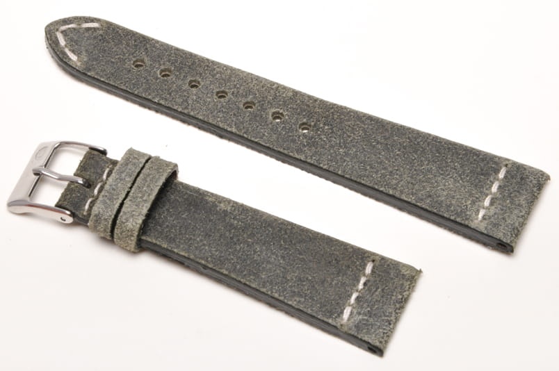 Wykonany z naturalnej, zamszowej skóry. Przeszyty na końcach ozdobnym, krótkim szwem. Delikatnie pogrubiany. Brzegi paska malowane. Dwie szlufki, stalowa klamerka. Dość miękki pasek w stylu Vintage.