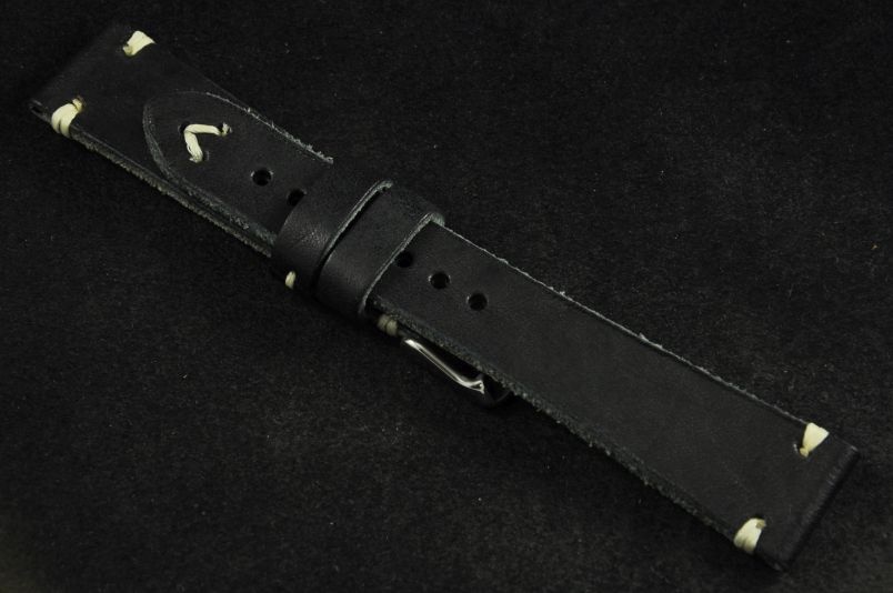 Pasek wykonany z grubej skóry cielęcej. Po obu stronach paska wysokiej jakości licowa skóra, wyprawiana na surową. Pasek przyszyty ozdobnymi pętelkami przy mocowaniu i klamerce. Dwie szlufki, stalowa klamerka. Prosty, surowy wygląd, w stylu vintage. Pasek z upływem czasu pięknie się starzeje.