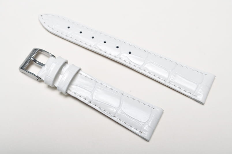 Wykonany ze skóry naturalnej. Imitacja skóry aligatora, lakierowany. Przeszyty nicią w kolorze paska. Delikatnie pogrubiany. Dwie szlufki, stalowa klamerka. Nieco krótsza wersja M