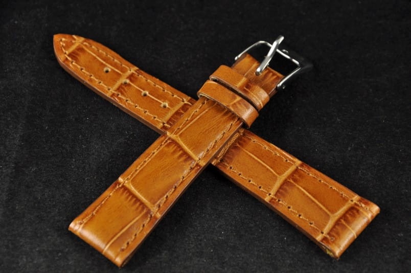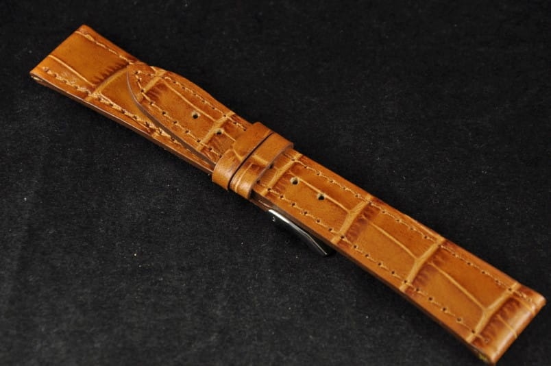Wykonany ze skóry naturalnej. Imitacja skóry aligatora, lakierowany. Przeszyty nicią w kolorze paska. Delikatnie pogrubiany. Dwie szlufki, stalowa klamerka. Nieco krótsza wersja M