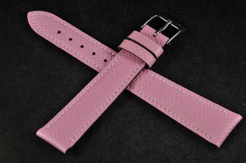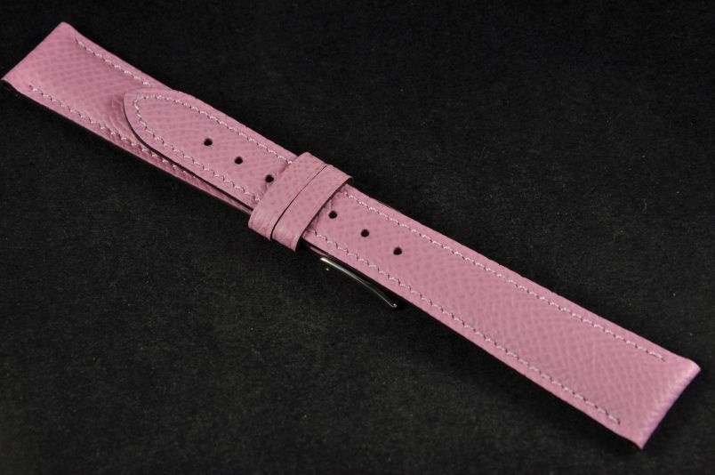 Wykonany ze skóry naturalnej o delikatnej fakturze typu "Hermes". Przeszyty nieco jaśniejszą, kontrastową nicią. Lekko pogrubiany, brzegi paska malowane ciemną farbą. Dwie szlufki, stalowa klamerka.