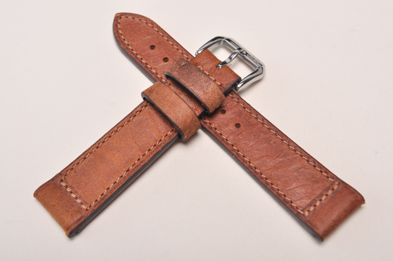 Wykonany ze skóry jelenia. Przeszyty nicią pod kolor paska. Brzegi paska malowane. Widoczna faktura skóry z naturalnymi niedoskonałościami. Dwie szlufki, stalowa klamerka. Dość miękki pasek w stylu Vintage.