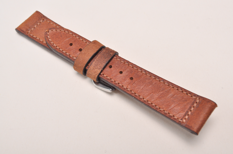 Wykonany ze skóry jelenia. Przeszyty nicią pod kolor paska. Brzegi paska malowane. Widoczna faktura skóry z naturalnymi niedoskonałościami. Dwie szlufki, stalowa klamerka. Dość miękki pasek w stylu Vintage.