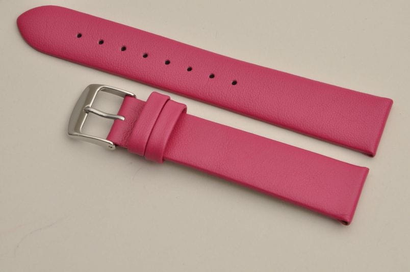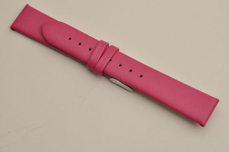 Pasuje do zegarków z mocowaniem 16mm. Wykonany z naturalnej skóry. Klejony, gładki, miękki pasek. Płaski, grubość 3mm. Stalowa klamerka, podwójna szlufka.