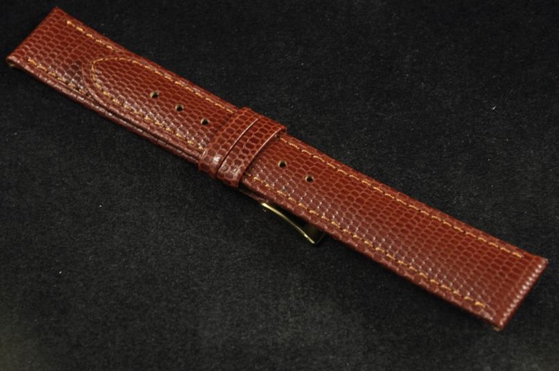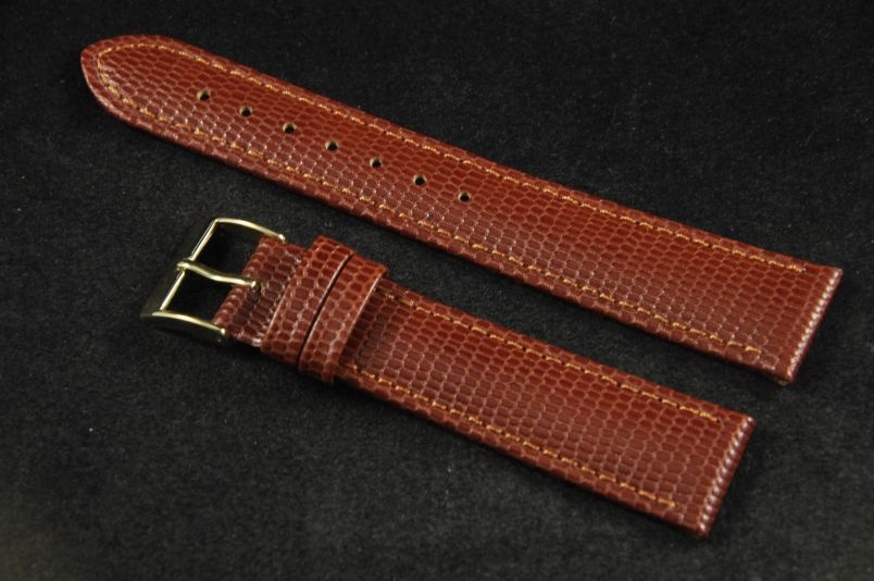 Wykonany z naturalnej skóry, imitacja skóry jaszczurki. Wykończenie matowe, przeszyty nicią pod kolor paska. Delikatnie pogrubiany, 3,3mm grubości. Podwójna szlufka. Elegancki pasek, często stosowany jako zamiennik do markowych zegarków, pasuje także do zapięć motylkowych.