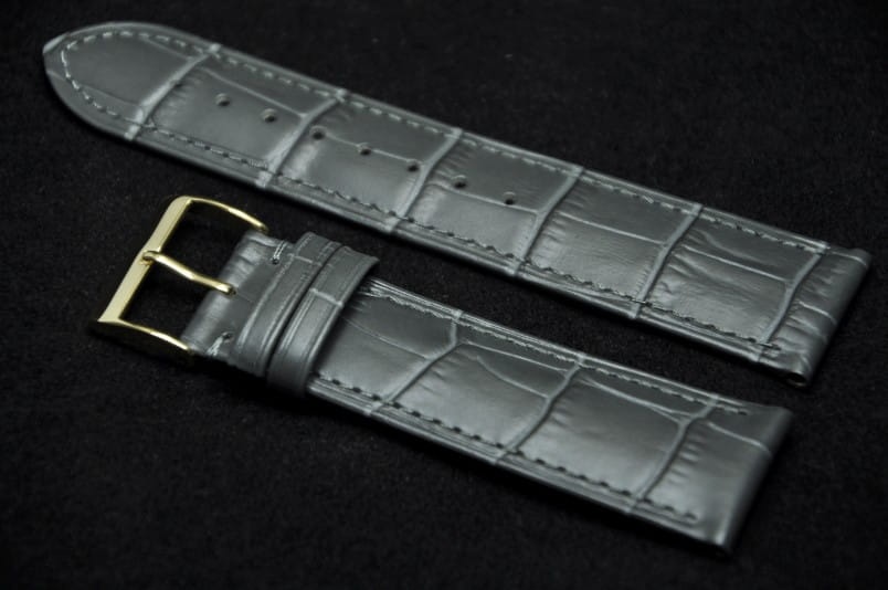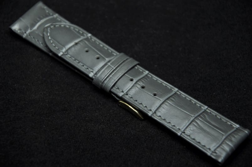 Wykonany z naturalnej skóry, imitacja skóry aligatora. Przeszyty nicią w kolorze paska. Płaski, miękki, bardzo elegancki pasek. Licowa, gładka futrówka. Podwójna szlufka. Stalowa klamerka.