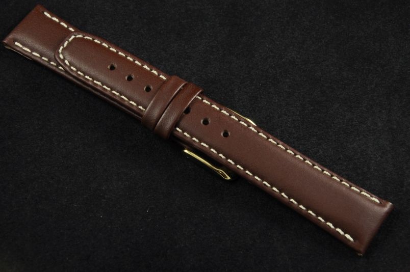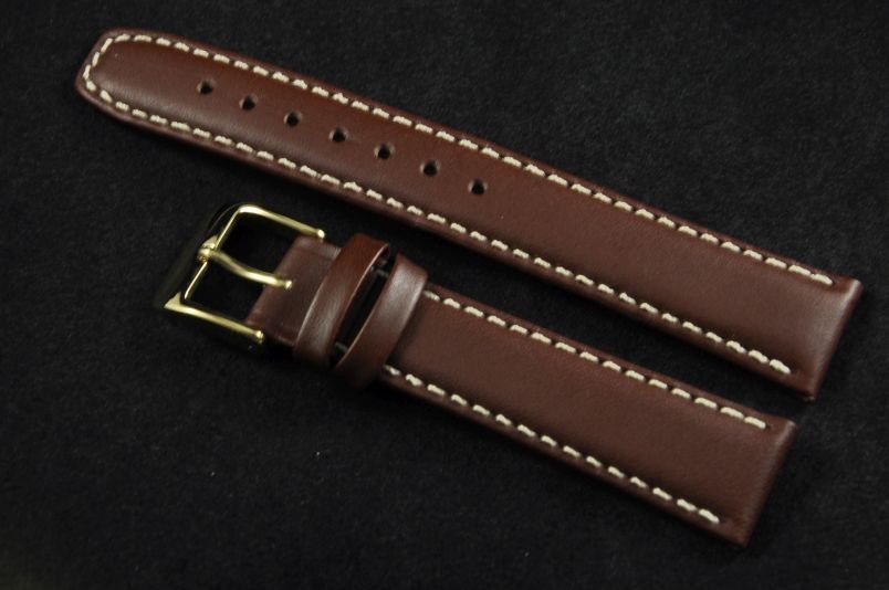 Pasek do zegarków z mocowaniem 18mm. Wykonany ze skóry naturalnej, gładki, półmatowy. Przeszywany białą nicią, spód ze skóry licowej.Płaski, miękki pasek, idealny zamiennik do markowych zegarków, zwłaszcza o sportowym charakterze. Podwójna szlufka, stalowa klamerka.