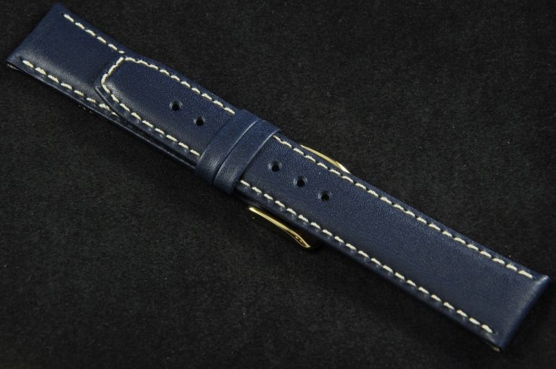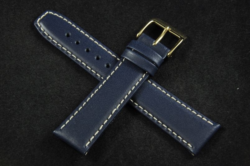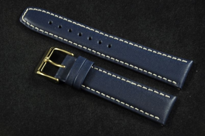 Pasek do zegarków z mocowaniem 20mm. Wykonany ze skóry naturalnej, gładki, półmatowy. Przeszywany białą nicią, spód ze skóry licowej. Płaski, miękki pasek, idealny zamiennik do markowych zegarków, zwłaszcza o sportowym charakterze. Podwójna szlufka, stalowa klamerka.
