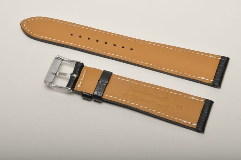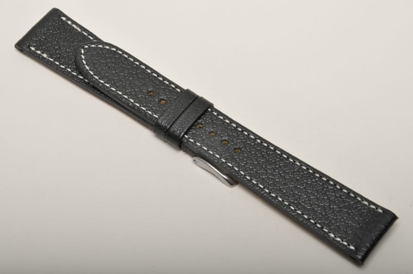 Wierzch paska wykonany z naturalnej skóry cielęcej, z delikatną fakturą Wykończenie na półpołysk. Futrówka z delikatnej w dotyku, najwyższej jakości skóry używanej przez uznanych producentów m.in. Hermes. Płaski i miękki. Pasek przeszyty białą nicią. Dwie szlufki, metalowa klamerka. Mocno przewężany, elegancki pasek do cienkich oraz mniej typowych zegarków, nadający im klasyczny charakter.