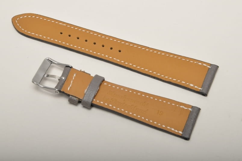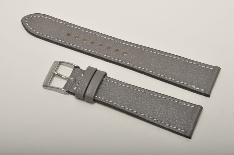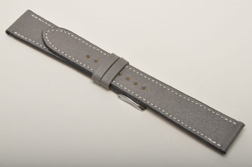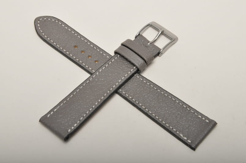 Wierzch paska wykonany z naturalnej skóry cielęcej, z delikatną fakturą Wykończenie na półpołysk. Futrówka z delikatnej w dotyku, najwyższej jakości skóry używanej przez uznanych producentów m.in. Hermes. Płaski i miękki. Pasek przeszyty białą nicią. Dwie szlufki, metalowa klamerka. Mocno przewężany, elegancki pasek do cienkich oraz mniej typowych zegarków, nadający im klasyczny charakter.