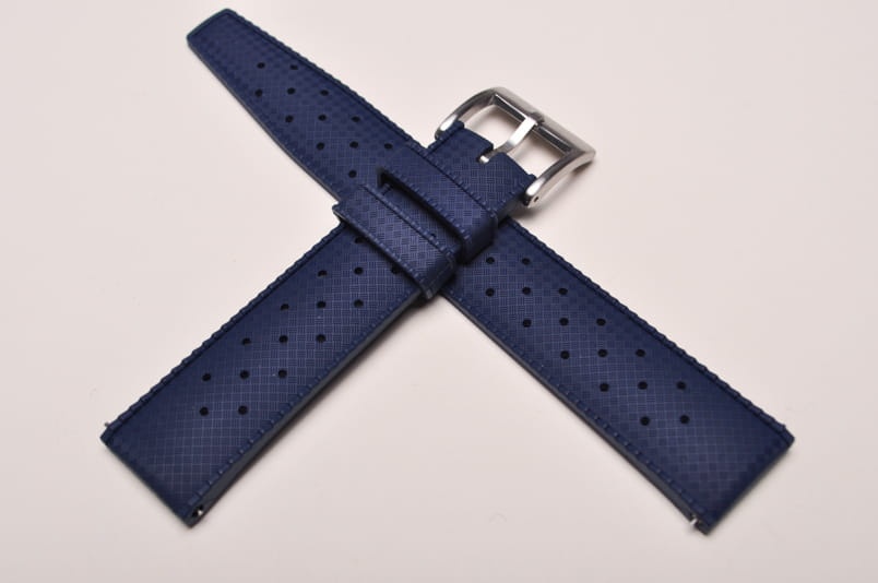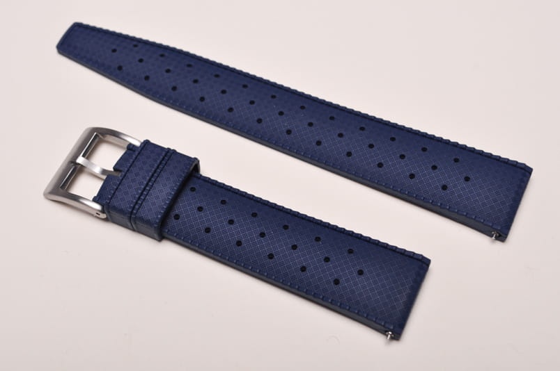 Pasek typu tropic, z charakterystycznymi otworami, wykonany z kauczuku wysokiej jakości. Od strony wierzchniej brzeg paska lekko podniesiony, na spodzie profil zapewniający wentylację. Dwie ruchome szlufki, stalowa klamerka. Fason paska (węższy i równo ucięty koniec) nawiązuje do modeli stosowanych w zegarkach Rolex czy Tudor. Wbudowane teleskopy do szybkiego montażu.