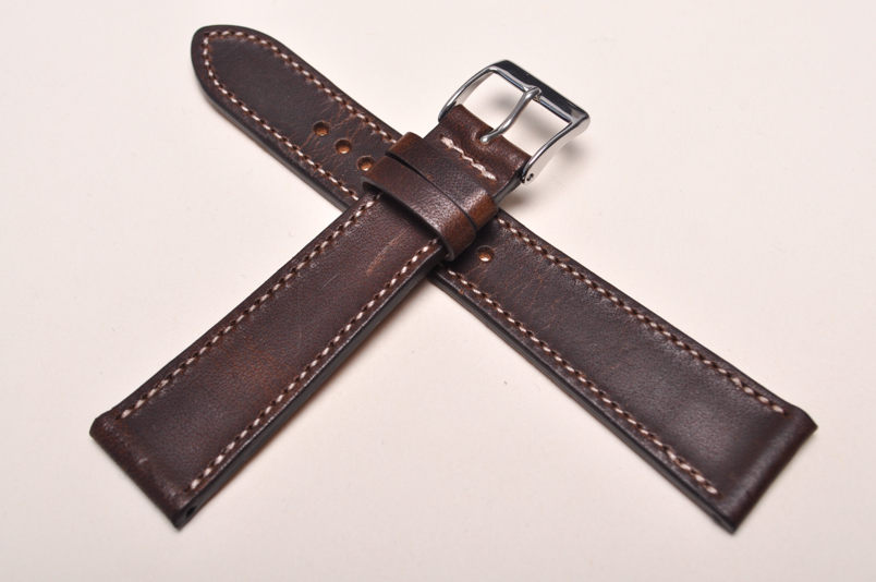 Wykonany z naturalnej skóry wyprawionej naturalnymi metodami. Gładki i miękki o grubości tylko 2,7mm. Przeszyty dookoła delikatną jasną nitką.Wykończenie półpołysk. Spód paska ze skóry licowej.