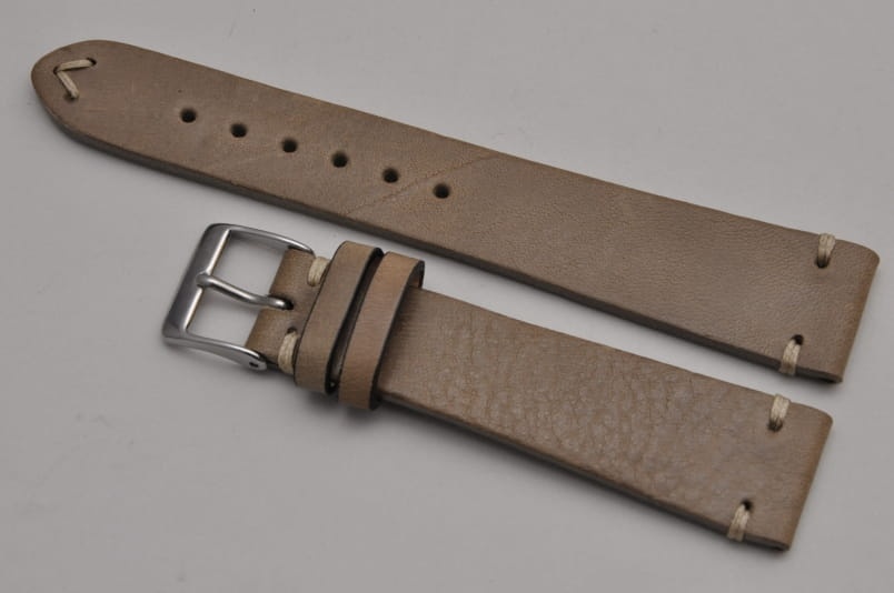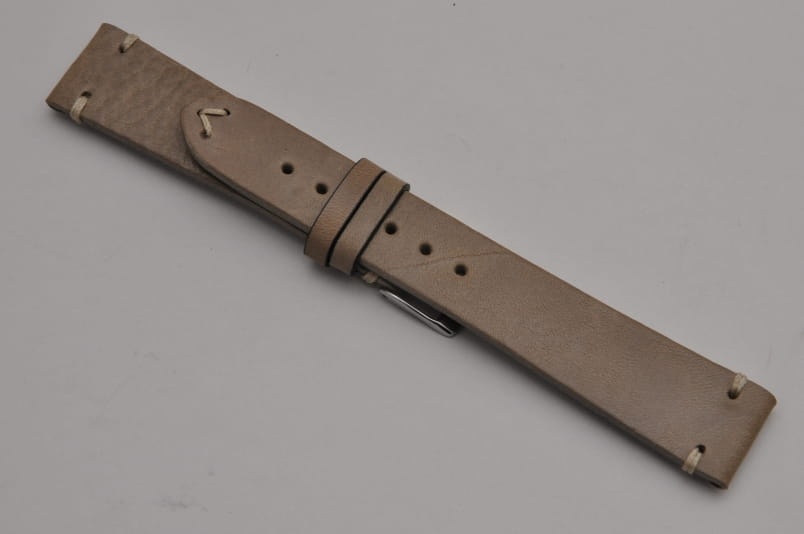 Wykonany z jednego kawałka skóry naturalnej o roślinnej wyprawie. Gładki, o ciekawej fakturze skóry. Ozdobne przeszycia na końcach, nitka w kolorze beżwoym. Miękki, 3,5mm grubości. Wykończenie matowe. Brzegi skóry polerowane.