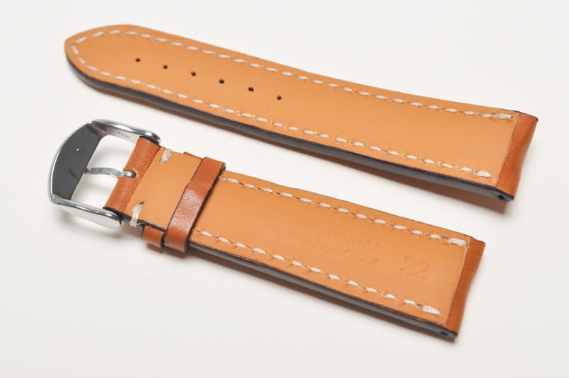 Pasuje do masywnych  zegarków z mocowaniem 22mm. Wykonany z naturalnej skóry. Matowy, gładki pasek. Kolor brązowy. Przeszyty jasną nicią.