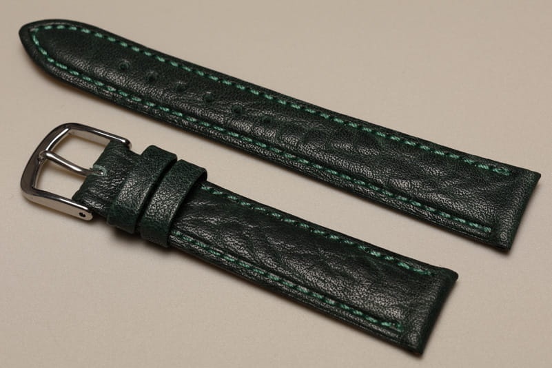 Wykonany ze skóry o naturalnej fakturze. Przeszyty nicią pod kolor paska. Dość miękki, 3,2mm grubości. Wykończenie matowe. Brzegi zawijane, podwójna szlufka, stalowa klamerka.Wersja krótka XS.