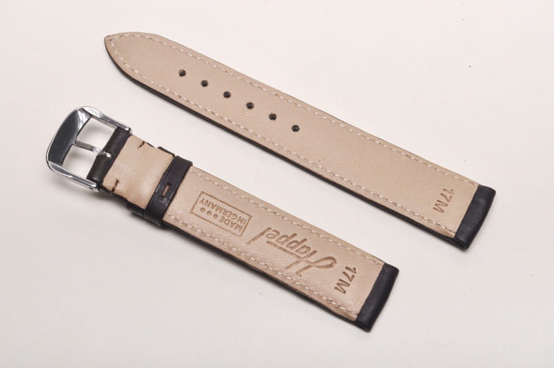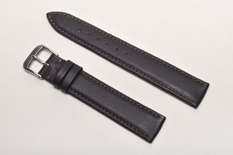 Pasuje do każdego zegarka z teleskopem 17mm. Wykonany z naturalnej skóry. Gładki, lekko pogrubiany, przeszyty nicią pod kolor paska. Stalowa klamerka, dwie szlufki.