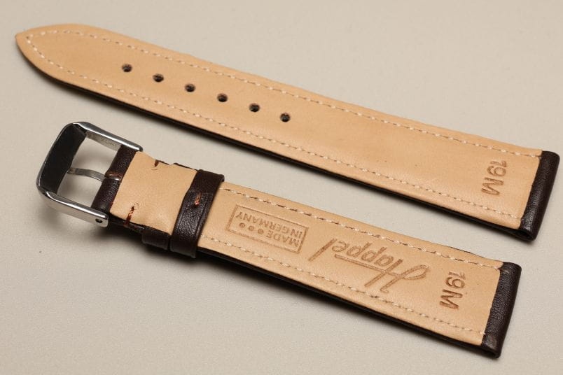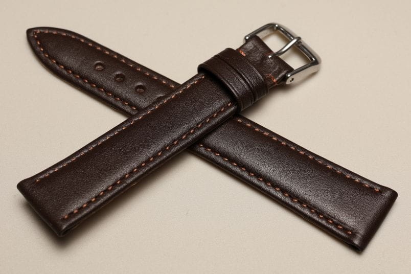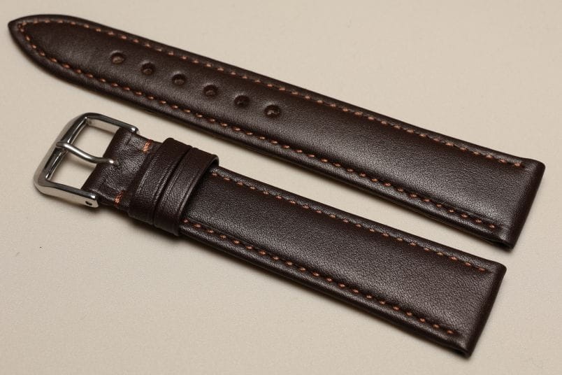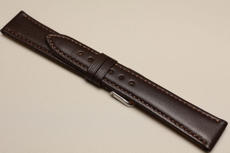 Pasuje do każdego zegarka z teleskopem 19mm. Wykonany z naturalnej skóry. Gładki, lekko pogrubiany, przeszyty nicią pod kolor paska. Stalowa klamerka, dwie szlufki.