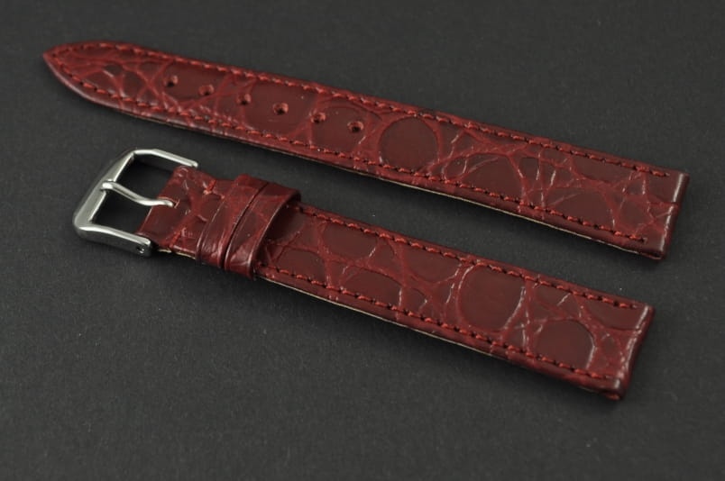 Pasuje do każdego zegarka z teleskopem 17mm. Wykonany z naturalnej skóry, imitacja skóry krokodyla. Przeszyty nicią w kolorze paska. Płaski, elegancki krój. Podwójna szlufka. Stalowa klamerka.