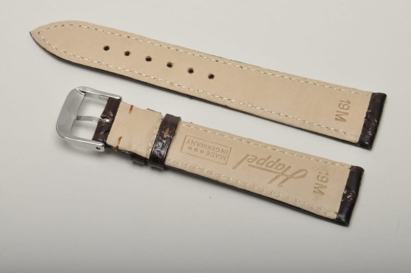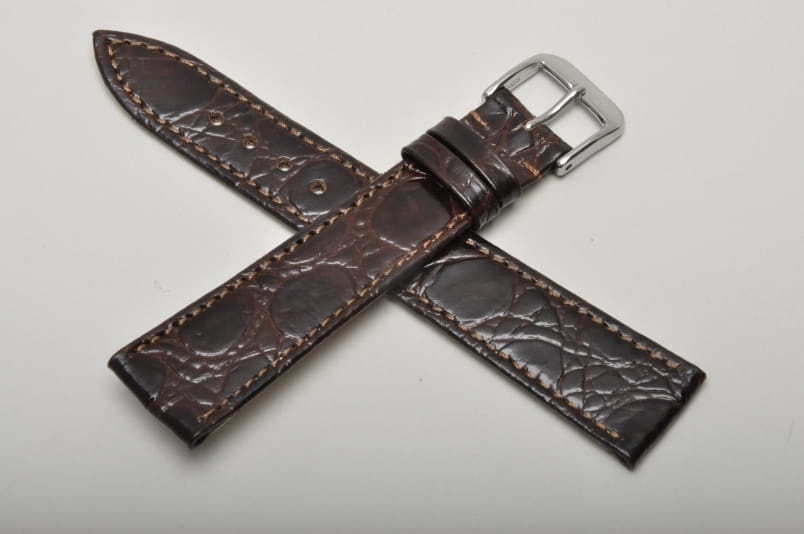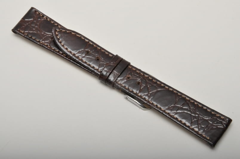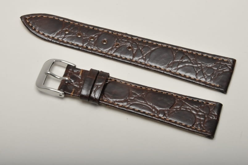 Pasuje do każdego zegarka z teleskopem 19mm. Wykonany z naturalnej skóry, imitacja skóry krokodyla. Przeszyty nicią w kolorze paska. Płaski, klasyczny krój. Podwójna szlufka. Stalowa klamerka.