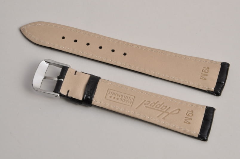 Pasuje do każdego zegarka z teleskopem 19mm. Wykonany z naturalnej skóry, imitacja skóry krokodyla. Przeszyty nicią w kolorze paska. Płaski, klasyczny krój. Podwójna szlufka. Stalowa klamerka.