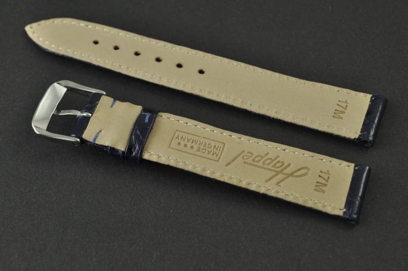 Pasuje do każdego zegarka z teleskopem 17mm. Wykonany z naturalnej skóry, imitacja skóry krokodyla. Przeszyty nicią w kolorze paska. Płaski, klasyczny krój. Podwójna szlufka. Stalowa klamerka.