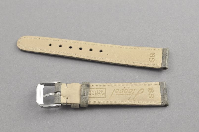 Pasuje do każdego zegarka z teleskopem 16mm. Wykonany z naturalnej skóry, wysokiej klasy imitacja skóry strusia. Przeszyty nicią pod kolor paska. Delikatnie pogrubiany i dość miękki. Podwójna szlufka. Stalowa klamerka. Wersja S.