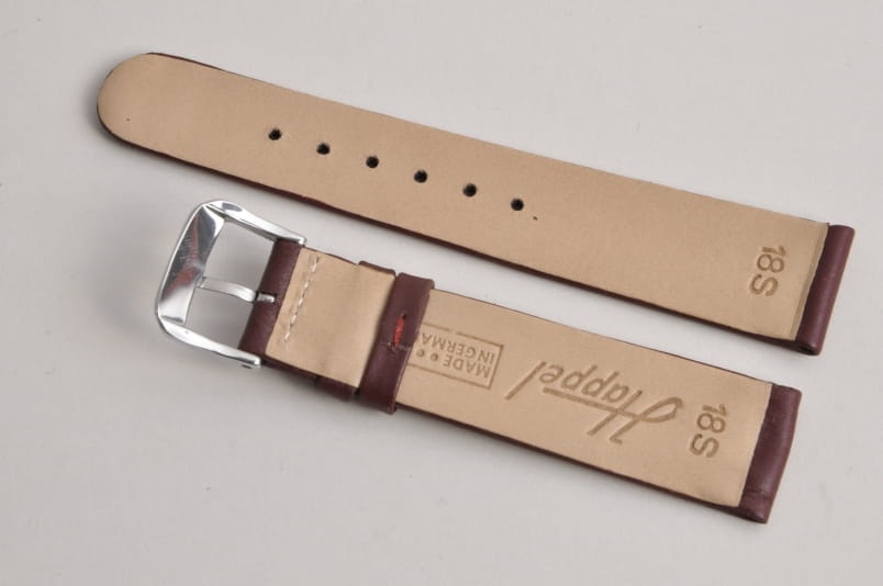 Pasuje do każdego zegarka z teleskopem 18mm. Wykonany z naturalnej skóry. Gładki, klejony bez przeszyć. Podwójna szlufka. Stalowa klamerka.