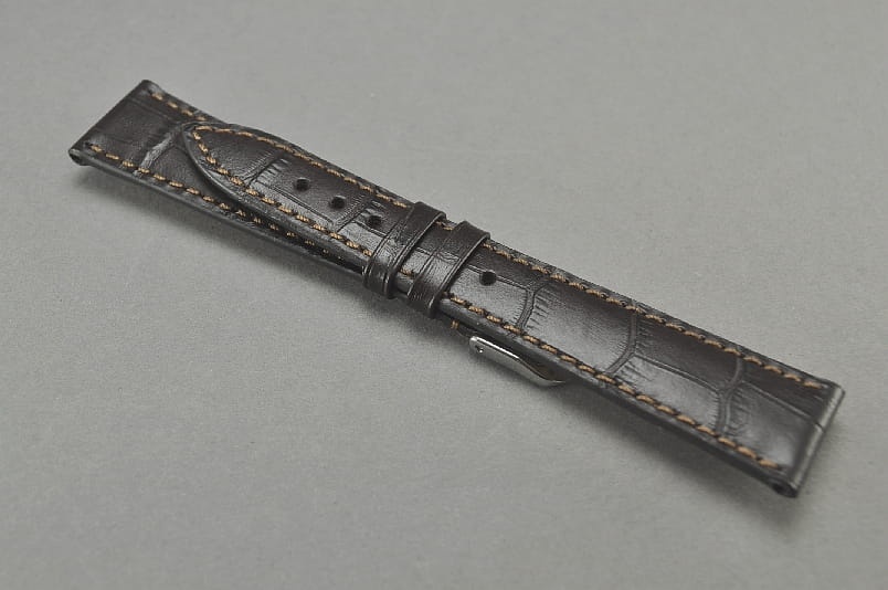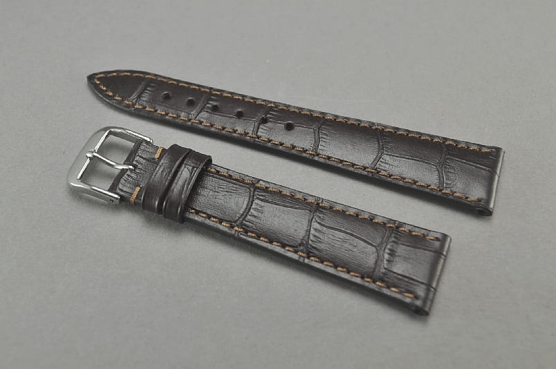 Pasuje do każdego zegarka z teleskopem 20mm. Wykonany z naturalnej skóry, imitacja skóry aligatora. Przeszyty nicią w kolorze paska. Lekko pogrubiany. Podwójna szlufka. Stalowa klamerka.