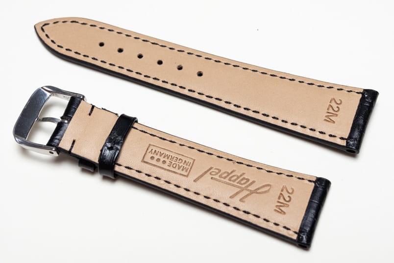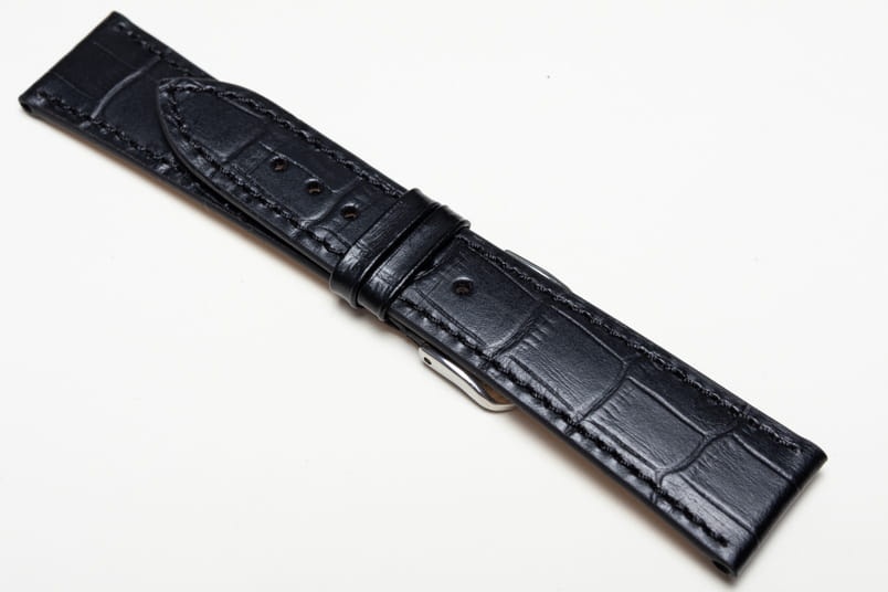 Pasuje do każdego zegarka z teleskopem 22mm. Wykonany z naturalnej skóry, imitacja skóry aligatora. Przeszyty nicią w kolorze paska. Lekko pogrubiany. Podwójna szlufka. Stalowa klamerka.