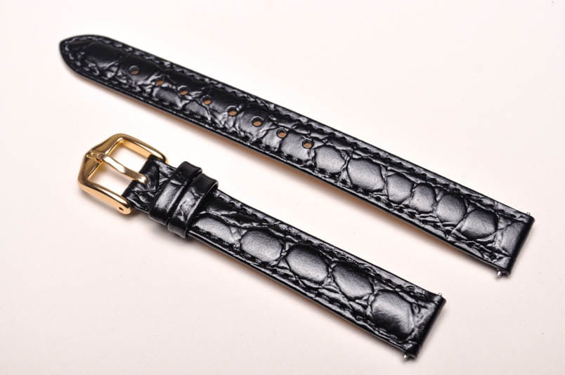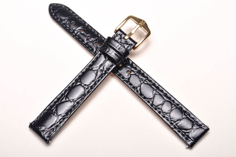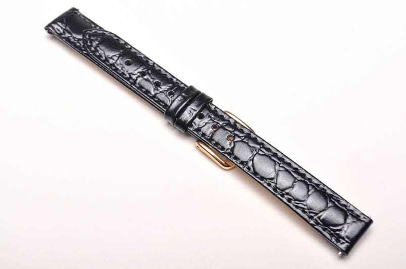 Wykonany z naturalnej skóry cielęcej tłoczonej na wzór skóry krokodyla. Wykończenie na połysk. Futrówka typu Softglove - miękka i miła w dotyku. Przeszywany delikatną nicią ton w ton. Pogrubiany lekko przy mocowaniu do 3,5mm, dalej pasek cieniowany do 2,6mm. Podwójna szlufka, metalowa klamerka. Długość w rozmiarze M.