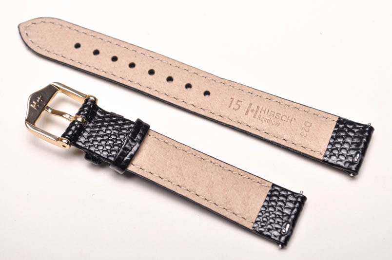Do zegarków z mocowaniem 13mm. Wykonany ze skóry cielęcej, tłoczonej na wzór skóry jaszczurki. Przeszywany nicią pod kolor paska. Pogrubiany przy mocowaniu do 2,8mm, dalej pasek cieniowany do 18mm. Podwójna szlufka, metalowa klamerka. Krótsza wersja M.Wbudowane teleskopy do samodzielnego montażu.
