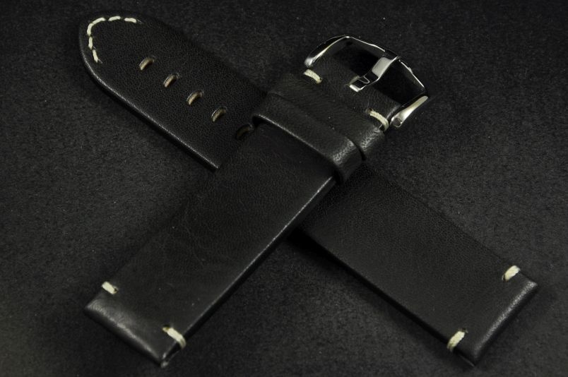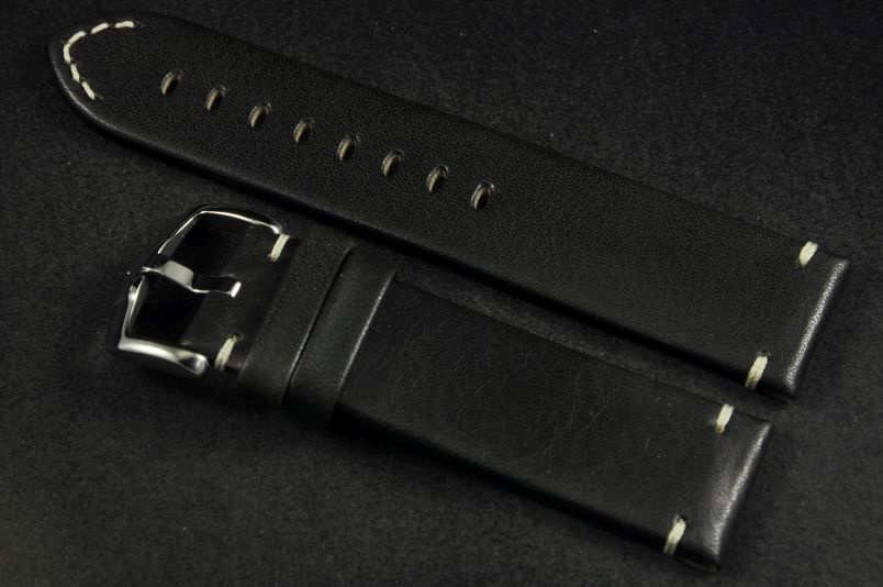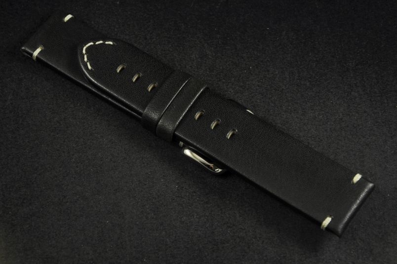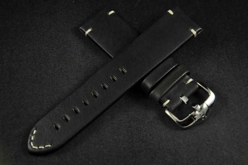 Pasek wykonany ze skóry cielęcej o naturalnej strukturze. Futrówka typu Softglove. Ozdobne szwy przy mocowaniu i końcu paska. Prosty, surowy wygląd o charakterze retro. Podwójna szlufka, stalowa klamerka. Wbudowane szybkie teleskopy.