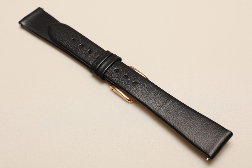 Wykonany z naturalnej skóry cielęcej. Gładki, półmatowy pasek. Klejony, bez szwów, stosunkowo miękki. Podwójna szlufka, metalowa klamerka. Klasyczny pasek w nowoczesnym wydaniu.