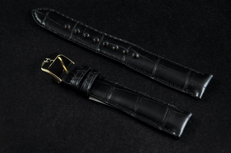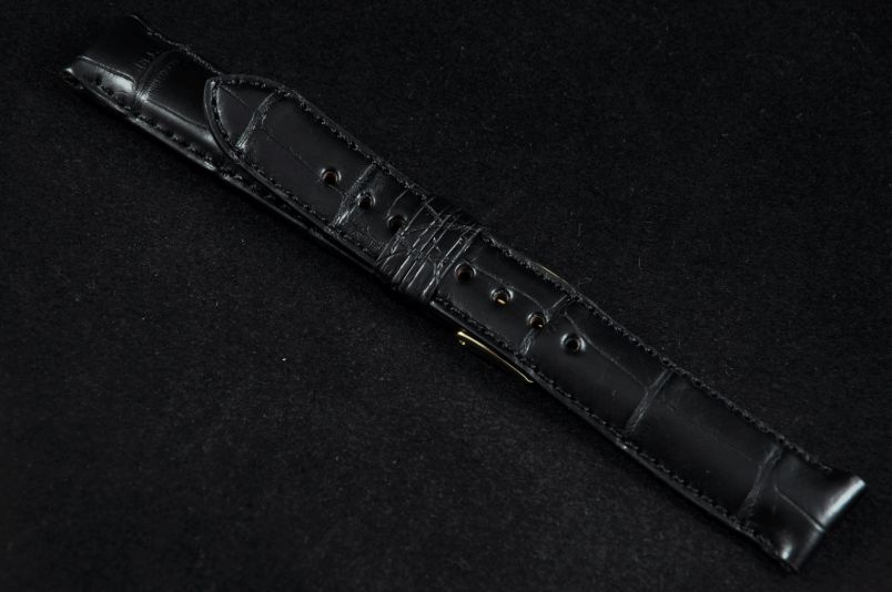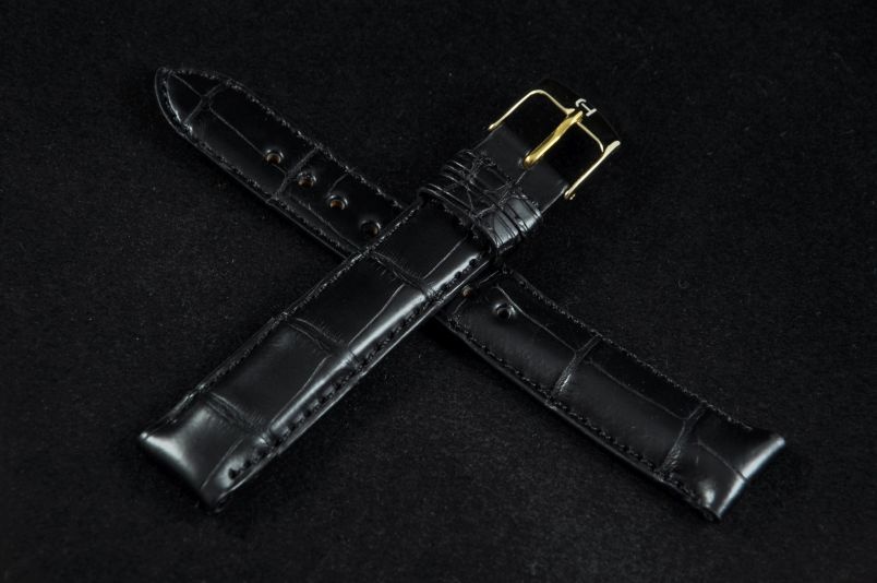Pasek firmy Horido. Wykonany z oryginalnej skóry aligatora, miękki i elastyczny.. Przeszycie w kolorze paska. Elegancki matowy pasek, z dobrze widoczną fakturą skóry. Pogrubiany do 6mm przy mocowaniu, dalej pocieniany do 3mm. Podwójna szlufka. Czarna futrówka. Pasek w rozmiarze XXL, maksymalna długość zapiętego paska to 18,5 cm.