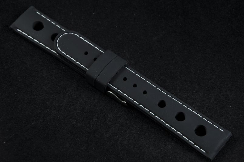 Pasek Horido 008 Rally, Silikonowy, Czarny, Biała nić, 20mm