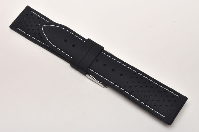 Pasek Horido 015, Silikonowy, Czarny, Biała nić, 22mm