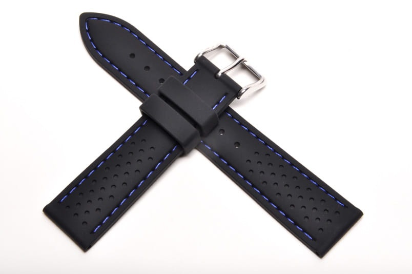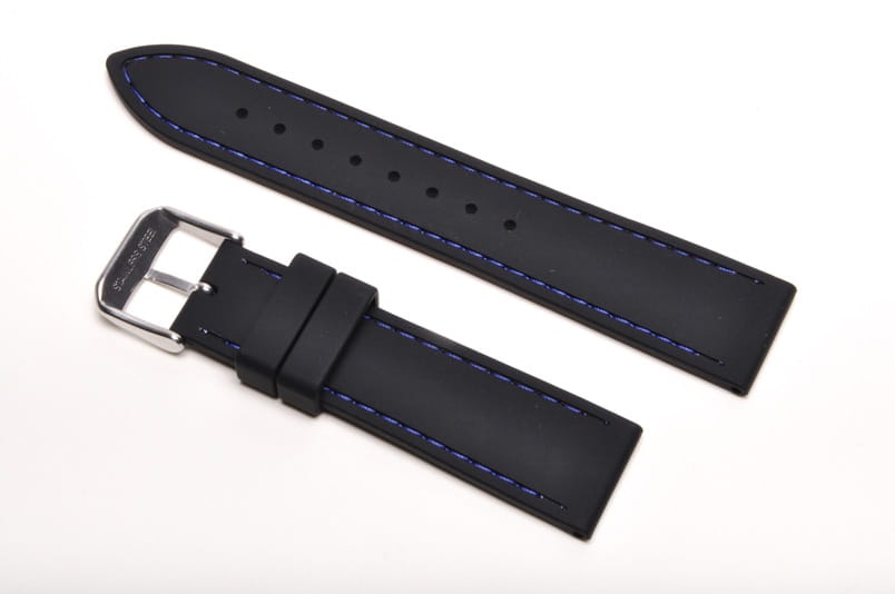 Pasek Horido 015, Silikonowy, Czarny, Niebieska nić, 24mm