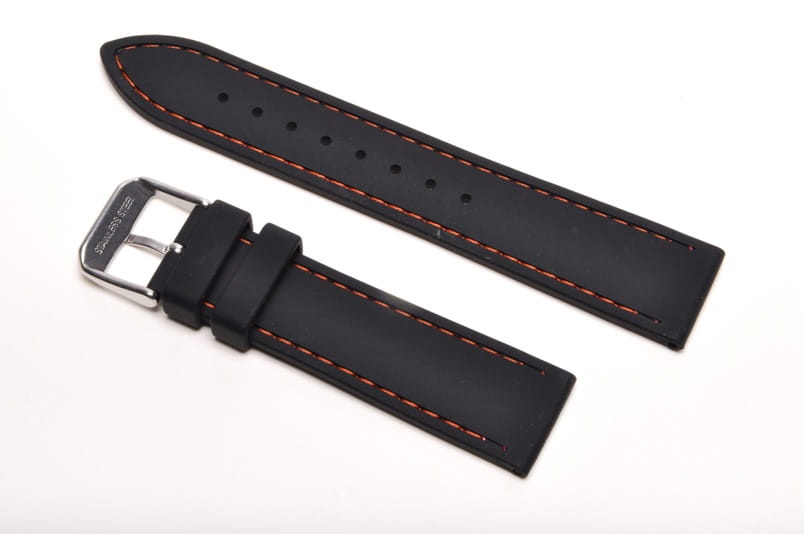 Pasek Horido 015, Silikonowy, Czarny, Pomarańczowa nić, 18mm