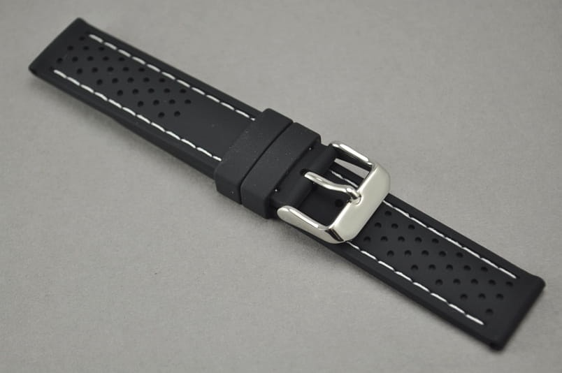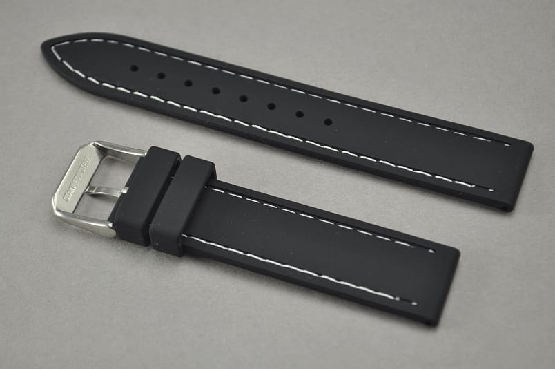 Pasek Horido 015 , Silikonowy, Czarny, Biała nić, 18mm