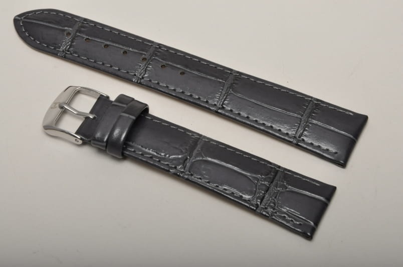 Wykonany z naturalnej skóry, imitacja skóry aligatora. Przeszyty nicią w kolorze paska. Płaski, miękki, bardzo elegancki pasek. Wykończenie w delikatnym połysku. Podwójna szlufka. Stalowa klamerka. Wersja przedłużona XL.