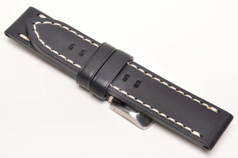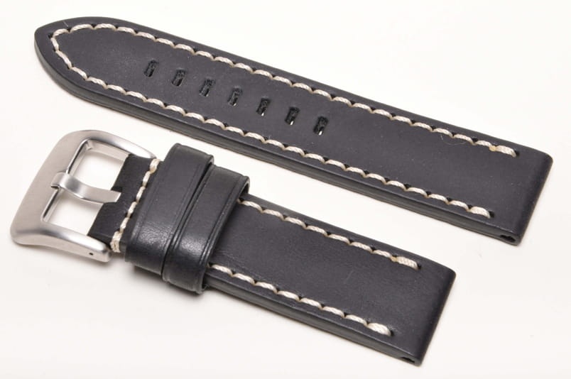Do dużych zegarków z mocowaniem 26mm. Wykonany ze skóry naturalnej. Przeszywany jasną nicią. Wyjątkowo gruby i masywny, 5mm grubości. Podwójna szlufka, stalowa klamerka. Pięknie wykonany, dość miękki i elastyczny, ładnie układa się na ręku.