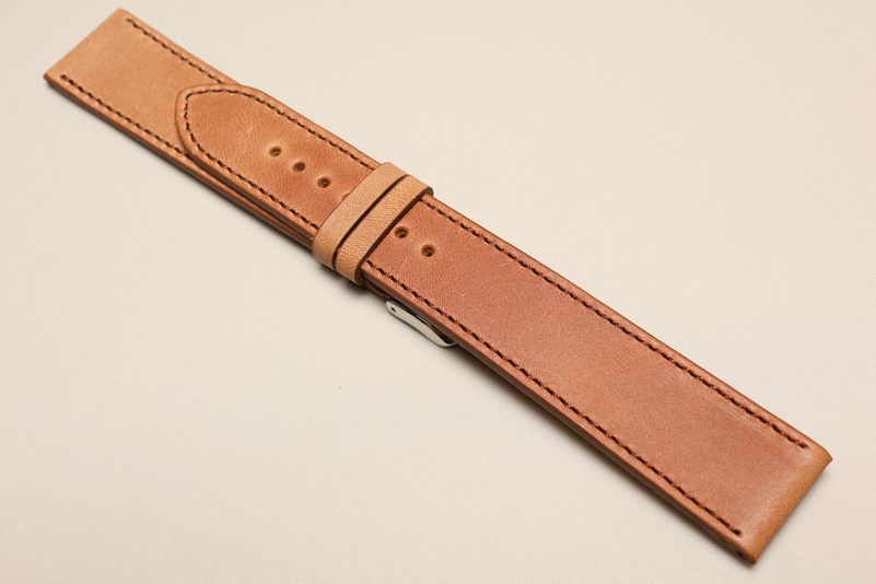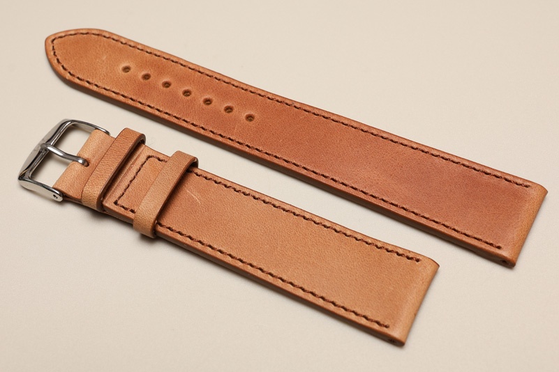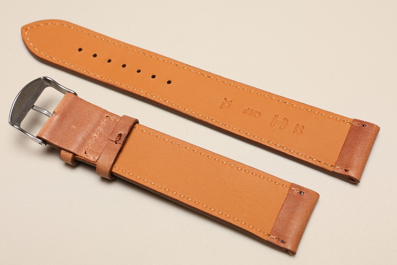 Wierzch paska wykonany z naturalnej skóry cielęcej o matowym wykończeniu i naturalnej strukturze. Futrówka z delikatnej w dotyku, najwyższej jakości skóry używanej przez uznanych producentów m.in. Hermes. Płaski, równo pogrubiony, miękki. Pasek przeszyty nicią pod kolor. Dwie szlufki, metalowa klamerka.Idealny do klasycznych zegarków vintage. Pasek w rozmiarze XXL