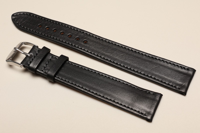 Wierzch paska wykonany z naturalnej skóry cielęcej o matowym wykończeniu i naturalnej strukturze. Futrówka z delikatnej w dotyku, najwyższej jakości skóry używanej przez uznanych producentów m.in. Hermes. Płaski, równo pogrubiony, miękki. Pasek przeszyty nicią pod kolor. Dwie szlufki, metalowa klamerka.Idealny do klasycznych zegarków vintage. Pasek w rozmiarze XXL
