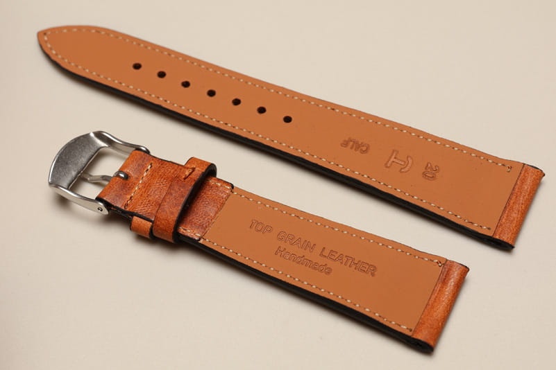 Wierzch paska wykonany z naturalnej skóry cielęcej w matowym, postarzonym wykończeniu Futrówka z delikatnej w dotyku, najwyższej jakości skóry używanej przez uznanych producentów m.in. Hermes. Płaski i miękki. Pasek przeszyty nicią pod kolor. Dwie szlufki, metalowa klamerka. Mocno przewężany, elegancki pasek do cienkich oraz mniej typowych zegarków, nadający im klasyczny charakter.