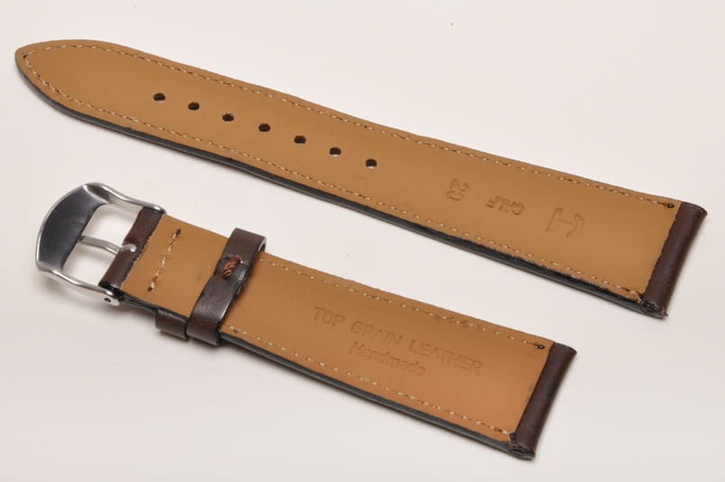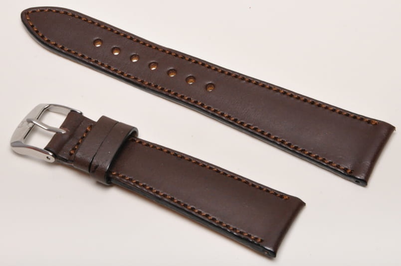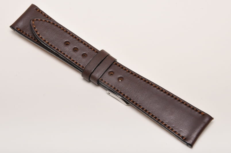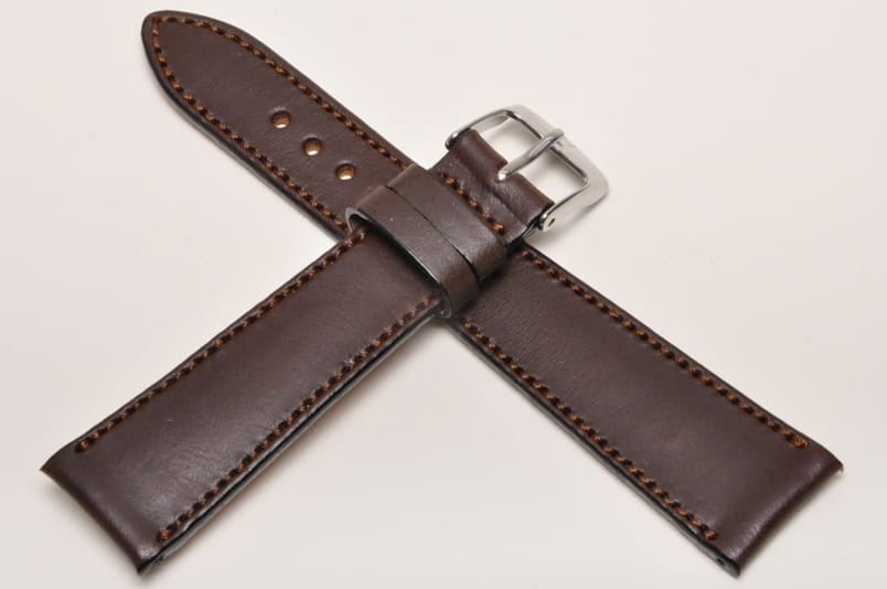 Wierzch paska wykonany z naturalnej skóry cielęcej, mocno woskowanej. Wykończenie na półpołysk. Futrówka z delikatnej w dotyku, najwyższej jakości skóry używanej przez uznanych producentów m.in. Hermes. Płaski i miękki. Pasek przeszyty nicią pod kolor. Dwie szlufki, metalowa klamerka. Mocno przewężany, elegancki pasek do cienkich oraz mniej typowych zegarków, nadający im klasyczny charakter.